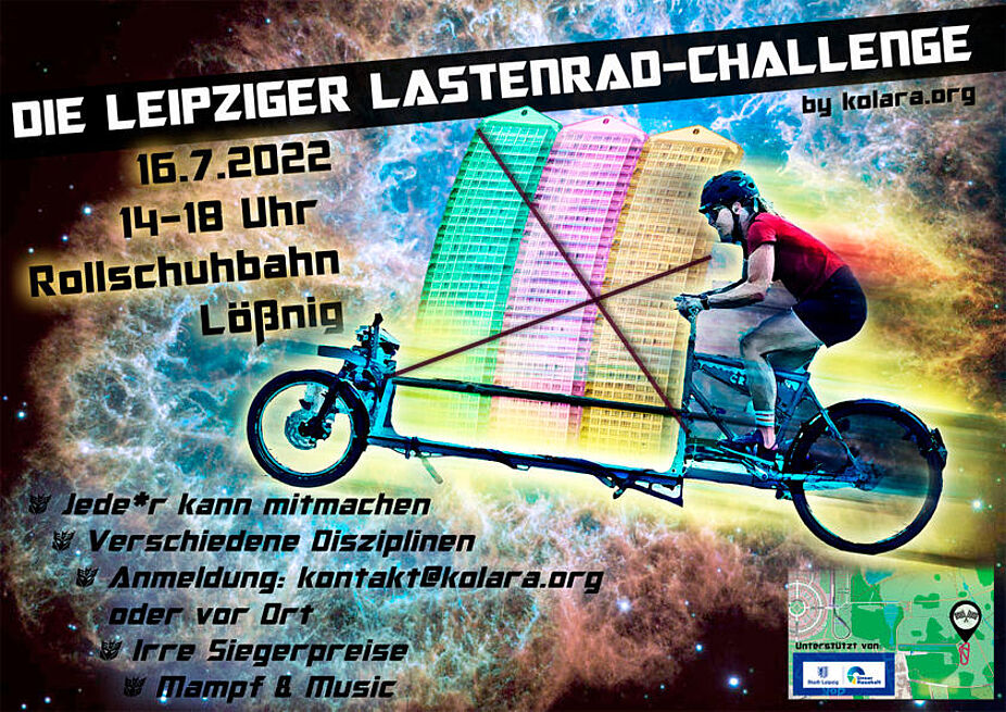 Leipzig, 11. Juli 2022 – Lastenräder sind super! Um das unter Beweis zu stellen, lädt das Kollektiv Lastenrad Leipzig am Samstag, den 16. Juli 2022 ab 14.00 Uhr zur vierten Leipziger Lastenrad-Challenge diesmal auf die Rollschuhbahn in Lößnig ein.