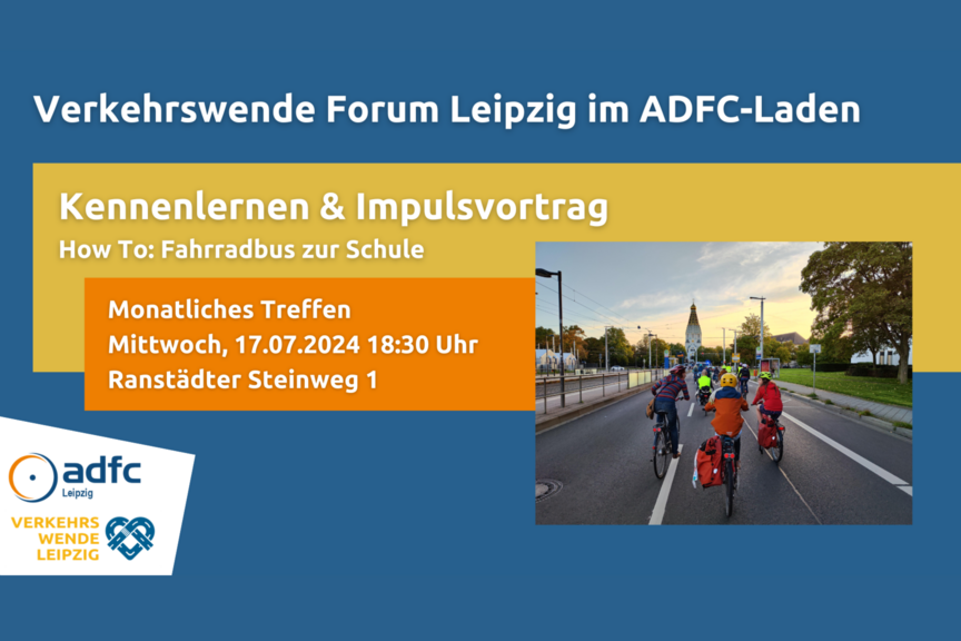 Weitere Informationen gibt es unter: https://verkehrswende-le.de/event/verkehrswende-forum-leipzig-im-adfc-laden-7/